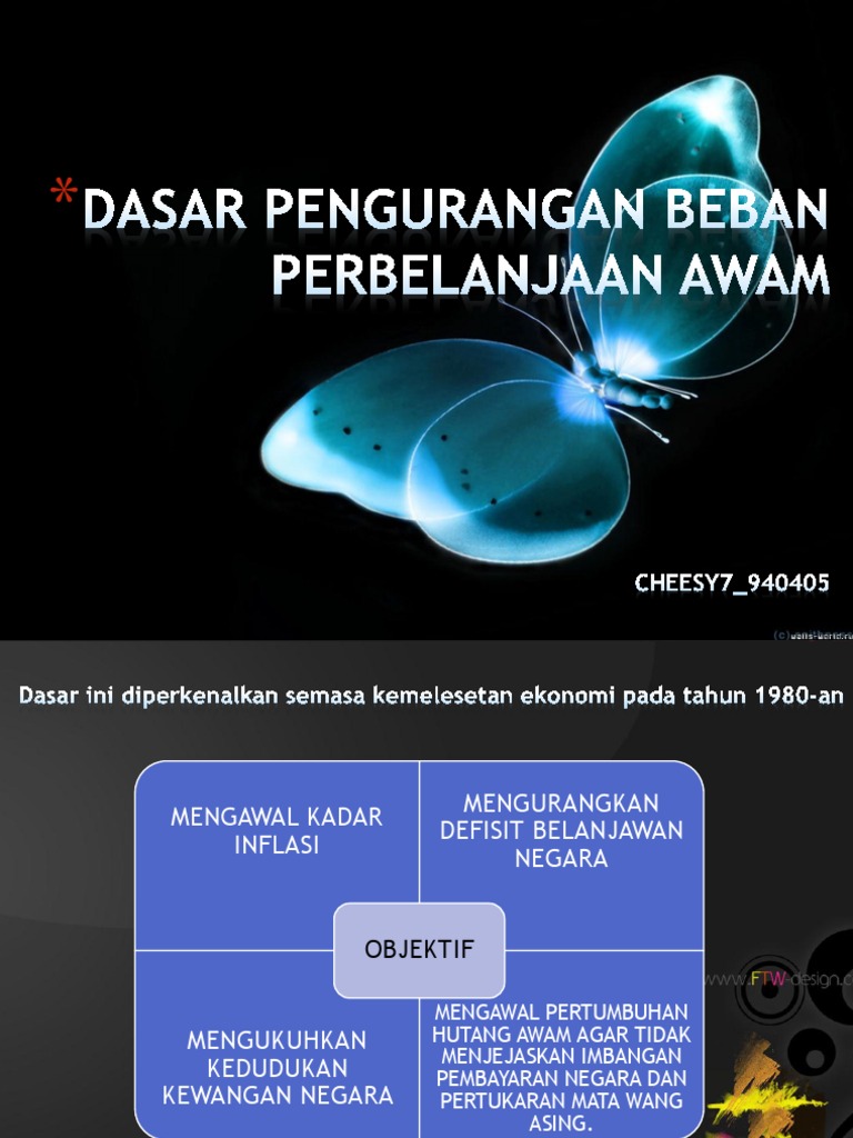 DIBENTANG OLEH IZZATI LATAR BELAKANG Dilancarkan pada. View dasar pengurangan beban perbelanjaan awampptx from aa 1dasar pengurangan beban perbelanjaan awam. DASAR PENGURANGAN BEBAN PERBELANJAAN AWAM OBJEKTIF mengukuhkan kedudukan kewangan kerajaan - mengurangkan defisit belanjawan DASAR BELI BARANGAN BUATAN MALAYSIA OBJEKTIF Menghapuskan prasangka bahawa barang-barang buatan tempatan tidak bermutu dan barangan import lebih bermutu - Mengurangkan.